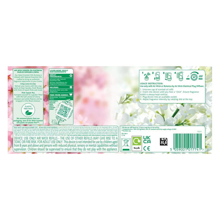 Air Wick Fragrances Plug In Scented Oil fragrances are infused with natural essential oils. Just plug in, choose your fragrance setting, and enjoy a continuous release of freshness for up to 100 days*. The Air Wick Liquid Electrical Plug In releases fragrances upwards and outwards. Place it in your hallway, living room and kitchen to deliver fresh scents that neutralise house smells and welcome guests to your home. Control the fragrance level as desired, while enhancing your décor with a sleek look. Simply insert a refill into your chosen plug in gadget and relax as the delightful fragrance instantly begins to infuse your room.