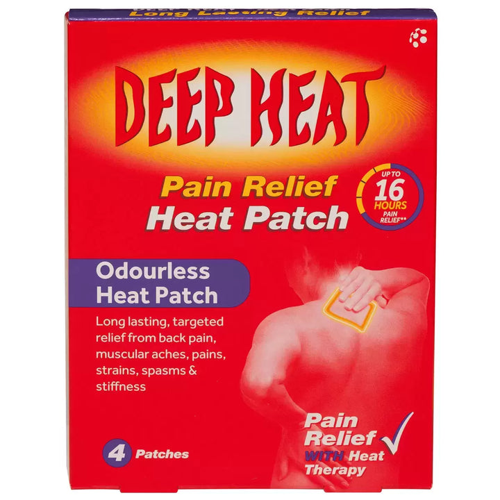 Deep Heat Pain Relief Heat Patch is an odourless heat patch used to assist long lasting, targeted relief from back pain, muscular aches, pains, strains, spasms and stiffness. Therapeutic heat from the Deep Heat Pain Relief Heat Patch provides targeted pain relief right where you need it. Plus, penetrating heat helps relax stiff, sore, aching muscles and joints helping to restore movement. Heat increases blood flow to the affected area providing oxygen and nutrients to aid the healing process.