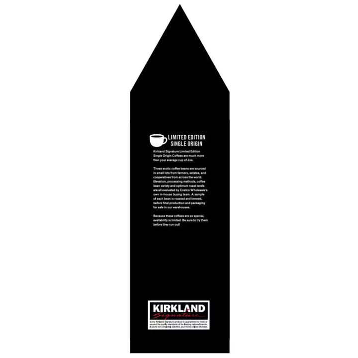 Kirkland Signature Limited Edition Single Origin Coffee Beans are sourced in small lots from farmers, estates and cooperatives from across the world. Elevation, processing methods, coffee bean variety and optimum roast levels are all evaluated by Costco Wholesale's own in-house buying team. A sample of each bean is roasted and brewed, before final production and packaging is confirmed.