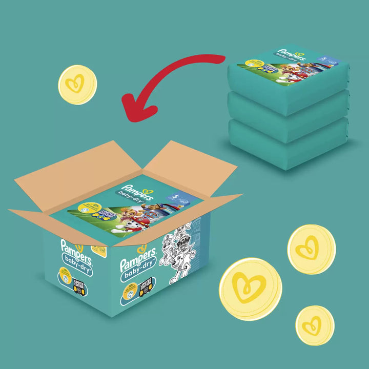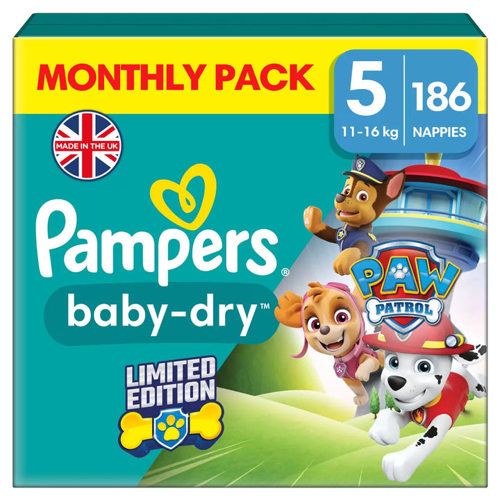 Pampers Paw Patrol Baby Dry Nappies Size 5, 186 Pack