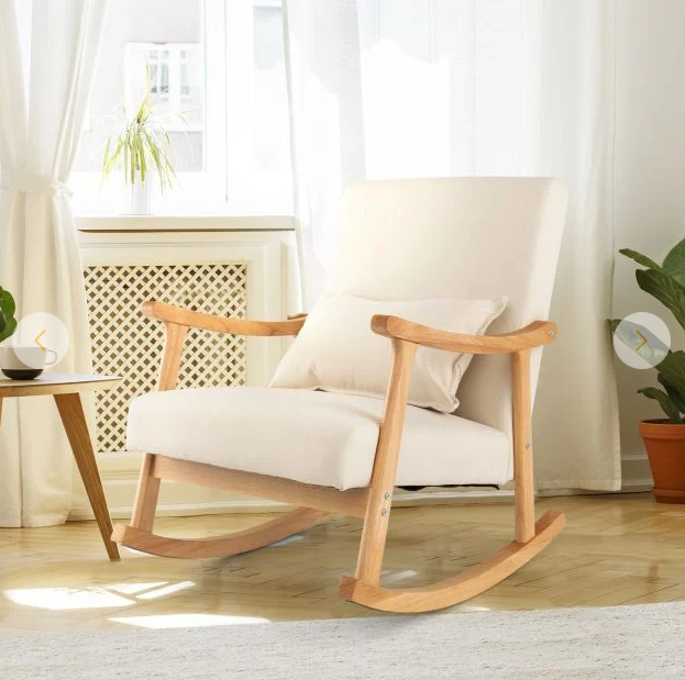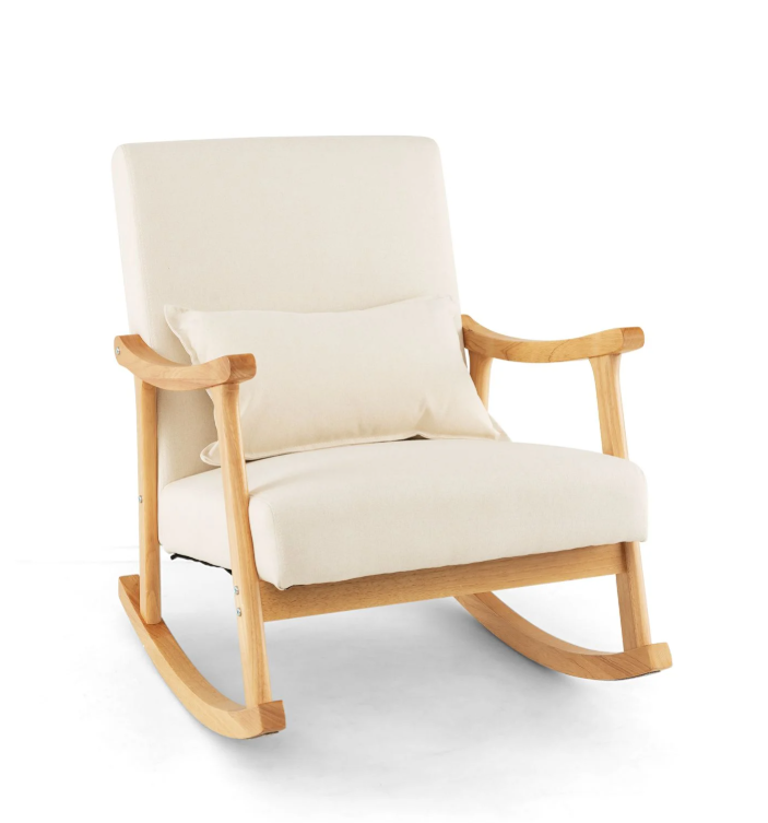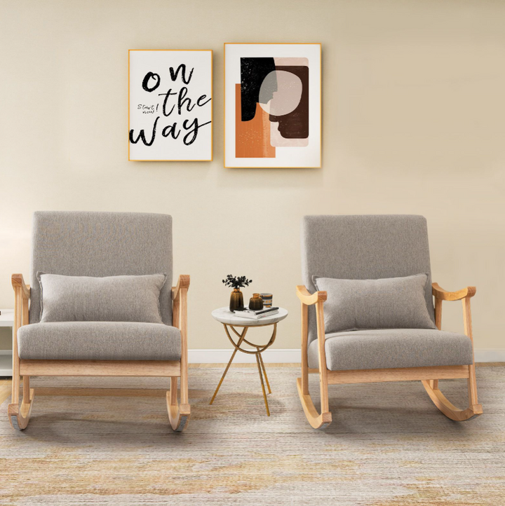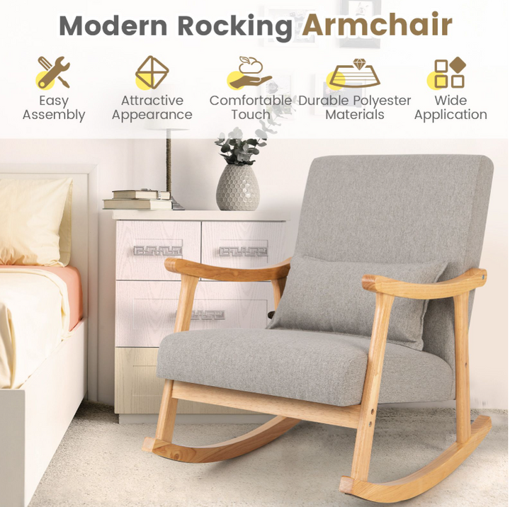 Upholstered Rocking Chair Modern Rocker with Rubber Wood Frame